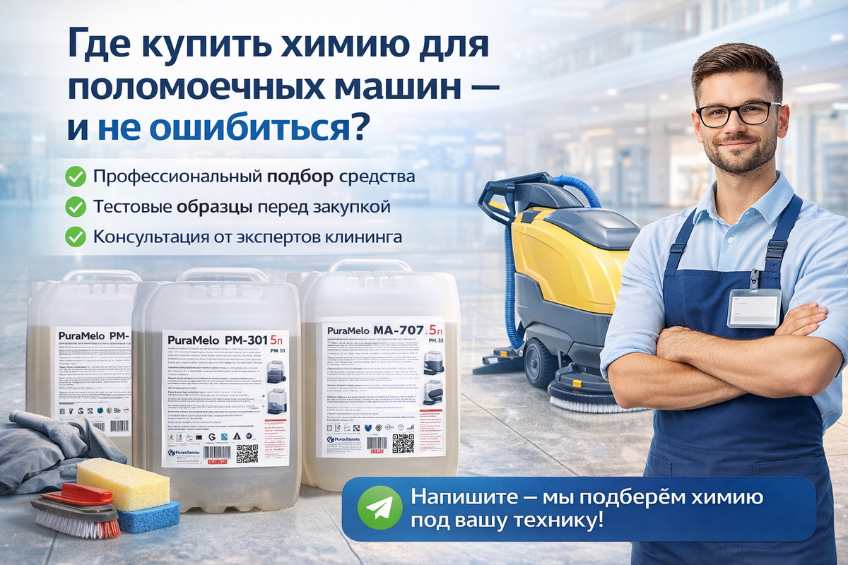 сложно понять, какое средство подходит именно под поломоечную или роторную машину; продавцы не разбираются в клининге и продают «универсальное»; нет грамотной консультации по pH, концентрации и типу загрязнений; невозможно протестировать средство до закупки Профессиональная химия для техники — это не «просто моющее» Для поломоечных и роторных машин важно:
