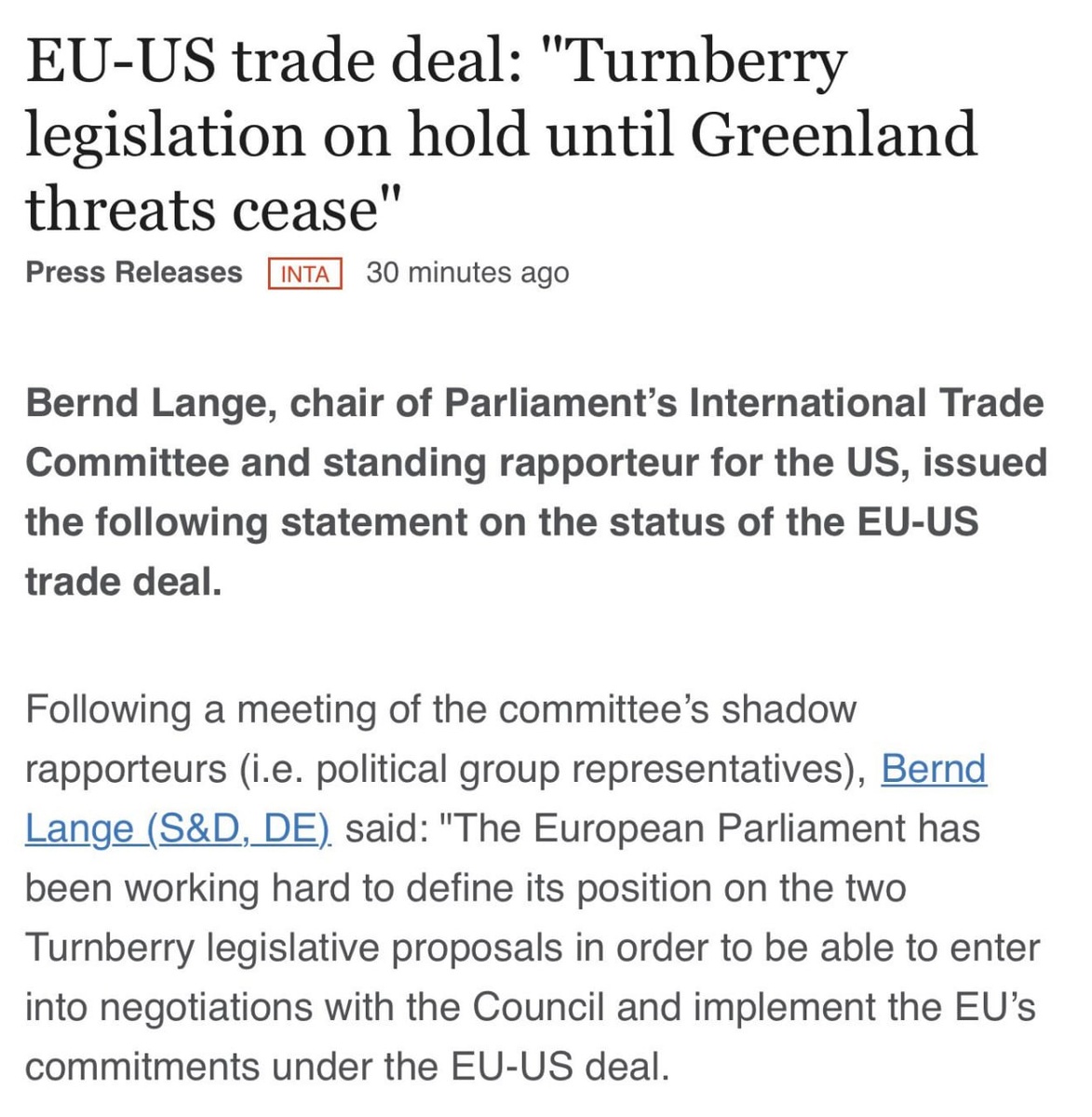 ⚡ Европарламент приостановил торговые переговоры с США из-за заявлений о Гренландии