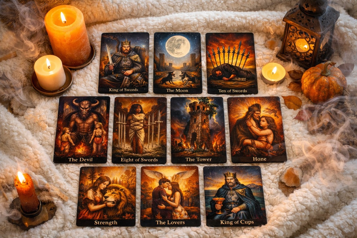 Сегодняшний расклад — это вход не для тех, кто ищет жалости или утешения. Это путешествие вглубь, туда, где эмоции — будто свежий, хрустящий хворост в костре, а настоящие желания прячутся под маской ледяного спокойствия и мнимого равнодушия.