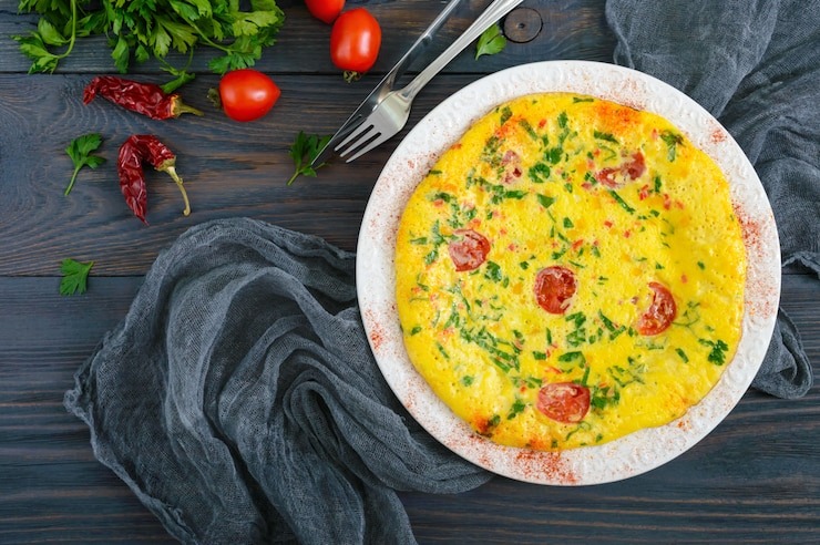 Как готовлю: Взбиваю яйца с молоком, солью и перцем до лёгкой пены. Нарезаю овощи мелко — помидор или перец, если есть шпинат — режу крупнее. На разогретую сковороду с маслом выливаю половину смеси, быстро раскладываю овощи и немного сыра, затем сверху выливаю оставшуюся яичную смесь — так получается «слоёный» омлет‑пончик, который не расползается. Жар