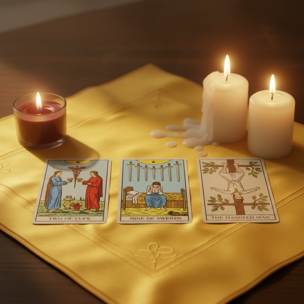 Прежде чем мы поймем его боль, мы должны осознать ценность того, что он боится потерять. Двойка Кубков — это не просто "любовь", это квинтэссенция идеального союза. Вывод по карте: Он не просто любит. Он считает вашу связь высшей ценностью в своей эмоциональной жизни. И именно эта запредельная ценность и делает возможную потерю такой катастрофой. Чем выше взлетаешь, тем больнее падать. Теперь, зная, что стоит на кону, мы можем понять природу его страданий. Слово "скучает" — это бледная тень того, что с ним происходит. Он не скучает. Он находится в ментальной агонии. Представь себе эти девять мечей, висящих над ним, как девять конкретных, ядовитых мыслей, которые терзают его, особенно по ночам: Вывод по карте: Его мысли о вас — это не светлая грусть. Это активная, изматывающая душевная пытка. Он заперт в цикле самобичевания и страха, где образ вашей идеальной связи (2 Кубков) стал инструментом для его страданий. Что происходит с человеком, который одной ногой стоит в раю (помня о 2 Кубк