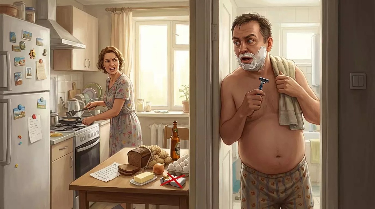 Муж в ванной бреется. Жена из кухни кричит: — Витя, не забудь сегодня за хлебом зайти! Муж, раздражённо: — Ты можешь сказать всё сразу, чтобы я два раза в магазин не бегал?! Жена: — Хорошо. Хлеб, картошка, лук, масло, яйца, пиво и сигареты тебе запрещены!
