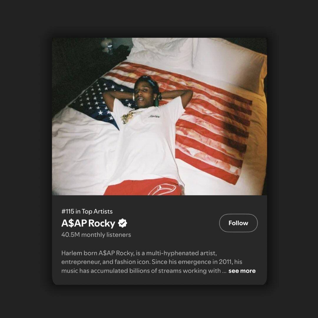 ASAP Rocky впервые в своей карьере превысил отметку в 40 миллионов ежемесячных слушателей на Spotify!
