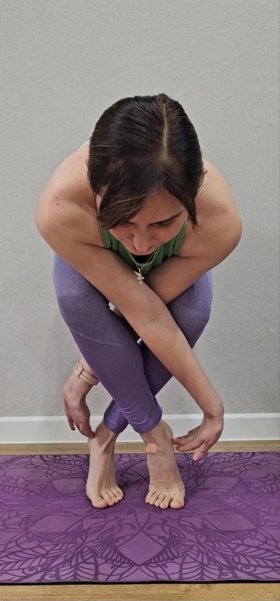 ). Выполняется с перекрещенными лодыжками и руками из положения стоя с наклоном вперед. Возможно разное положение рук Что работает в асане? 💜бедра 💜ягодицы 💜плечевой пояс 💜баланс 💜 С нового года ввела новшества в йога-практику: 💜планка и навасана каждое занятие на время: укрепляем кор и руки 💜асана месяца, чтобы мозг замечал как мы совершенствуемся Красиво? Попробуете повторить? #йога #прападасана #йогаонлайн #здоровье