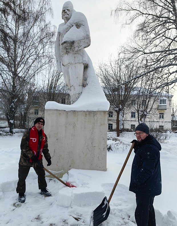 Кинешемские коммунисты готовятся ко Дню памяти Владимира Ленина. 21 января перестало биться сердце вождя Великой Октябрьской революции. В этот день каждый год мы приходим к памятнику Ленину, чтобы возложить цветы и вспомнить человека, изменившего ход мировой истории. После обильных снегопадов памятник Владимиру Ильичу занесён снегом. Накануне 20 января кинешемские коммунисты очистили от снежных заносов не только сам памятник вождю, но и прилегающие территории в микрорайоне «Фабрика №2» и «Электроконтакт». «Очистка памятников от снега – это важный аспект нашего уважения к истории и культуре. Забота о памятниках играет значительную роль в сохранении исторической памяти и формировании гражданской ответственности, что способствует сплочению общества и вдохновляет будущие поколения», – подчеркнул лидер кинешемских коммунистов Владимир Любимов Кинешемский горком КПРФ