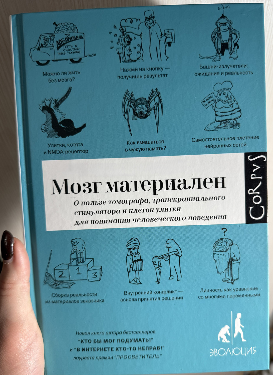 Данная книга перекочевала в этот год из прошлого, так как в новогодние каникулы я читала мало, то закончила её буквально неделю назад. Сразу стоит сказать, что автор является *ино**ентом (поэтому на книге вы не увидите автора) и абзаца "про автора" в данной статье не будет. Невероятный и захватывающий путеводитель по одному из самых загадочных и малоизученных органов нашего тела. Эта книга известного научного журналиста, популяризатора науки, лауреата премии «Просветитель» рассказывает об удивительных исследованиях, необычных опытах и поразительных открытиях, которые доказали, что наш мозг – так же материален, как и все другие органы нашего тела. Его можно исследовать, с ним можно проводить разного рода манипуляции. Вот только приводит это все порой к совершенно неожиданным последствиям. Начну с того, что меня реально раздражало в этой книге - слово "книжка" - именно так автор называет свою книгу, для меня книжка - это детская книга, а не как не научпоп. временами прямо хотелось зачер