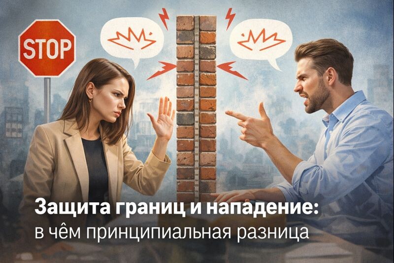 Очень многие люди путают защиту личных границ с нападением. Именно из-за этого одни годами терпят неудобные ситуации, а другие испытывают сильное чувство вины, когда наконец решаются сказать «нет». Кажется, будто отказ или несогласие автоматически делают человека жёстким, конфликтным или эгоистичным. Но это не так. Защита границ — это не про агрессию и не про желание поставить другого на место. Это про ясность и честность по отношению к себе. Когда человек защищает свои границы, он говорит о своих чувствах, возможностях и потребностях, не обесценивая другого. Он не нападает, не обвиняет и не доказывает, что кто-то неправ или плох. Он просто обозначает правила контакта: как с ним можно, а как нельзя. Ключевой момент защиты границ — фокус на себе. Формулировки вроде «мне так не подходит», «я не готов это делать», «мне важно по-другому» звучат спокойно, но при этом достаточно чётко. Даже если собеседнику неприятно это слышать, в этих словах нет агрессии. Есть уважение — и к себе, и к друг