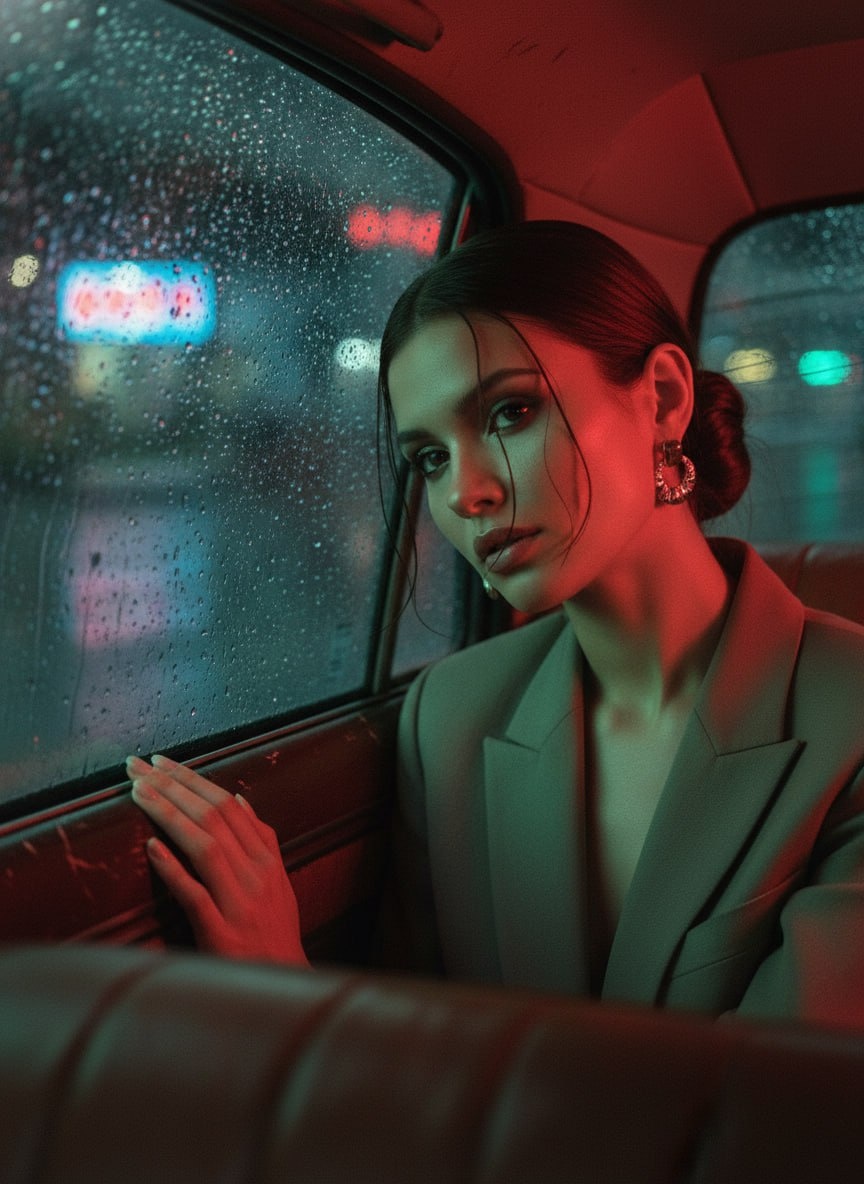 🔥 Твое селфи превращается в кадр из культового фильма. Тот самый вайб ночного Гонконга, меланхолии и мокрого асфальта. Сделал ракурс именно изнутри салона, как ты просил. Закидываем фото в бота и ловим эстетику. ⚡️ Используя загруженное селфи в качестве точного эталона лица со 100-процентным совпадением (--face_fidelity 1.0), создайте фотографию по описанию, сохранив полное сходство с оригиналом. Ультрареалистичный кинематографичный [портрет] в стиле Вонга Карвая, снятый внутри салона. [Человек сидит на заднем сиденье старого такси, прислонившись головой к запотевшему стеклу, рука касается края окна]. За окном [ночной город и огни, размытые дождем]. Освещение: [резкий контраст красного и зеленого неона, падающего на лицо]. Волосы [влажные от дождя]. Внутри [потертые кожаные сиденья, капли конденсата на стекле]. [Средний план, камера внутри такси]. Текстура: зернистая пленка, мягкое размытие, на герое [солнцезащитные очки] и [одежда как на референсе]. Как менять: 👀 🎯 Ракурс (заме