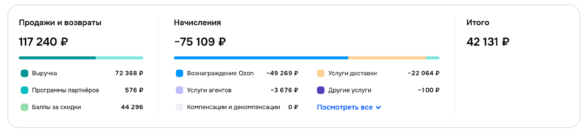 Также после продажи мы можем посмотреть полную раскладку по товару.