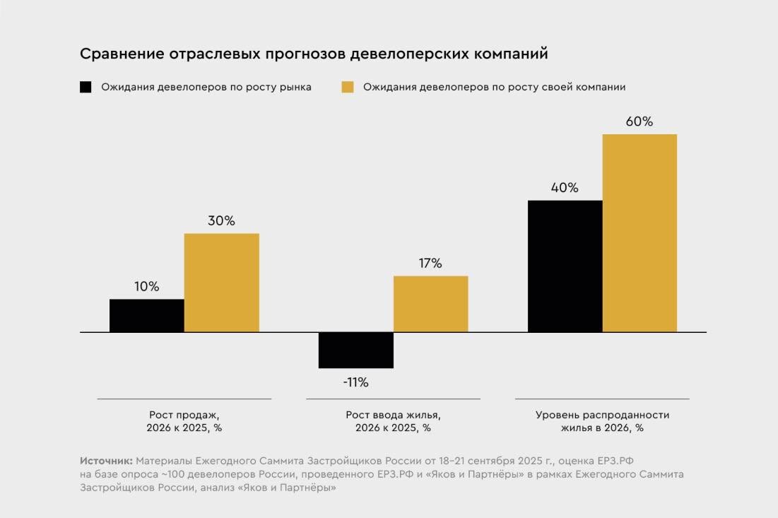 Читал всякие тренд-репорты и вот за этот слайд взгляд зацепился. Он показывает, что девелоперы повсеместно видят себя сильно лучше рынка. Причем с существенной разницей. Типа: У меня точно все будет отлично, а вот у рынка, соседа в целом хуже. ❗️ Мне кажется, что большой задачей ком. диров на 2026 год будет снятие собственных розовых очков и калибровка объективности оценки рынка. И себя в нем.