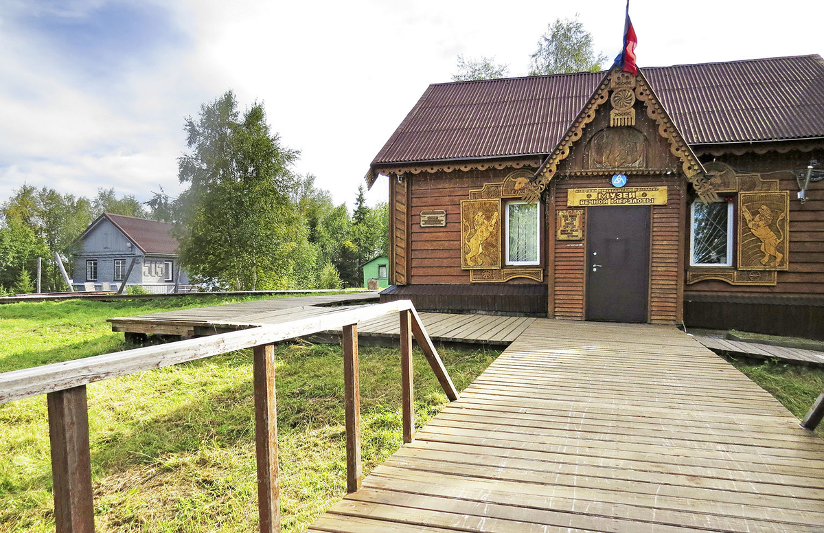 Игарка - город одной достопримечательности. Расположенный вдали от живого Микрорайона, за руинами Нового города и Старого города (а о том, как они строились и как опустели - есть отдельная статья) стоит Музей вечной мерзлоты - оазис жизни в этом пространстве запустения. Когда-то он был двором посреди посёлка, теперь больше похож на хутор посреди леса. Формально у него есть режим работы, а вот фактически сотрудники тут появляются по предварительным заявкам, причём часто - в довольно неожиданное время: мне, например, сказали подходить к 19 часам.