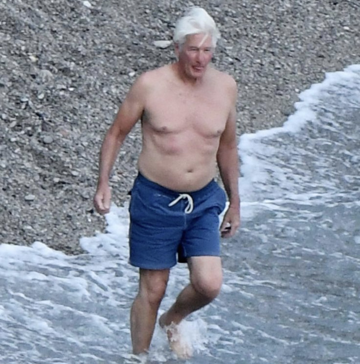 Пока другие звёзды его возраста скрываются под костюмами и ретушью, Гир спокойно выходит на пляж, поднимает гирю, подтягивается — и выглядит так, будто старение с ним договорилось.