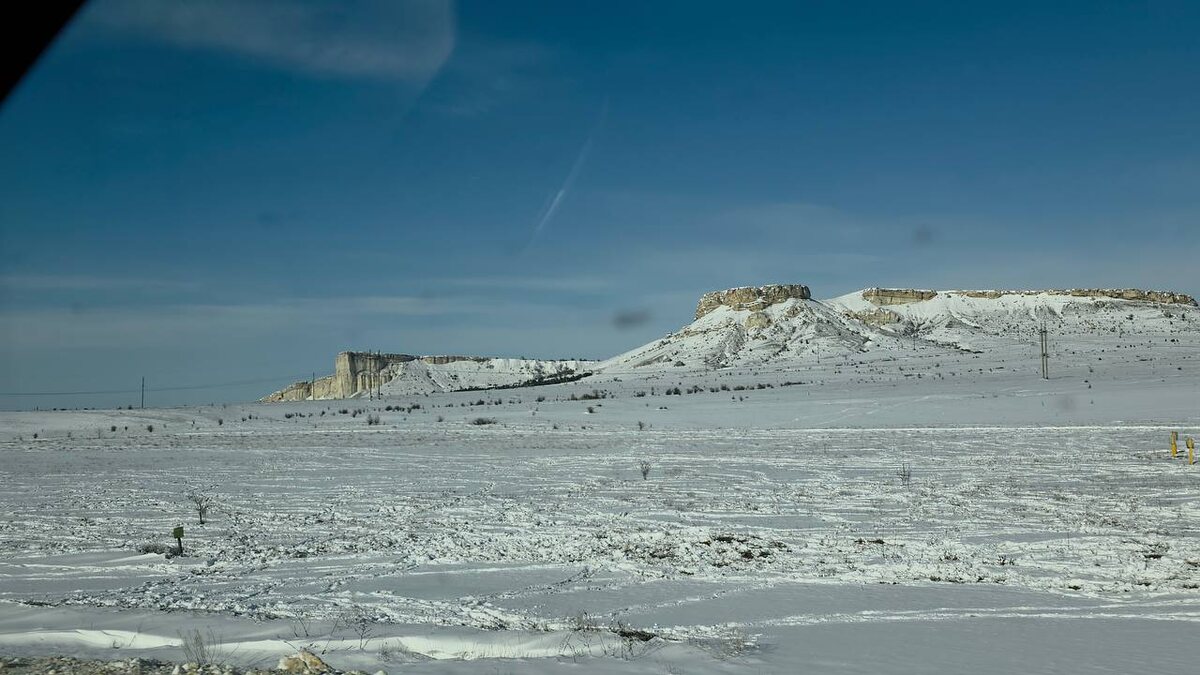 ! В Краснодаре было громко, глушили интернет. «В ночь на 21 января южные регионы России подверглись массированной атаке беспилотных летательных аппаратов. Основной удар пришелся на Республику Адыгея и Краснодарский край, где зафиксированы разрушения, возгорания и пострадавшие». У нас всё хорошо. Уже по дороге домой. Вокруг зимние пейзажи, продолжаем любоваться. По краснодарскому краю ❄️ -13,5. В Крыму -1,0 но ближе к дому -3,5 С. Вот такая разница! Сейчас трассы большей частью чистые. 📹 Трасса Таврида. 📸 Белая скала - по настоящему белая, в снегу 🌲⛰🌲 Заезжать не стали, хотим домой 😊