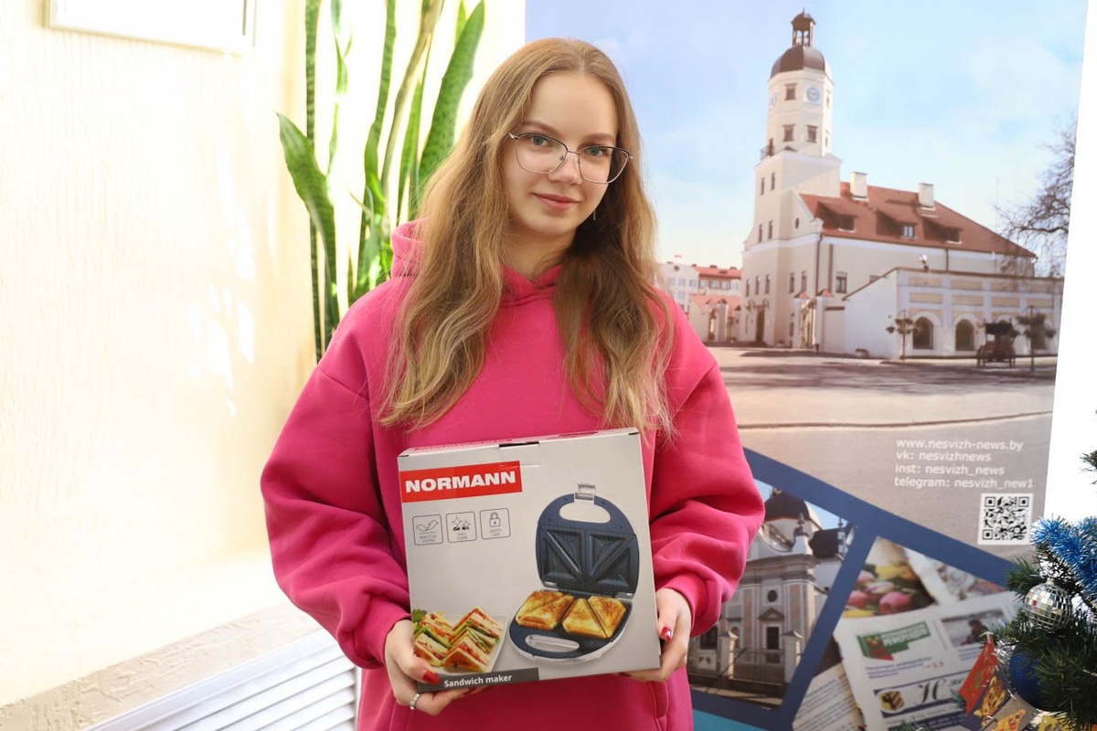 ! 🎁 Еще один подарок от «Нясвіжскіх навін» отправился своему счастливому обладателю. Сэндвичницу выиграла наша постоянная читательница Янина Судник из деревни Куноса. ✔️ Подарок в редакции с большой радостью забирала внучка Янины Ивановны, Виктория. 👉 Надеемся, что сэндвичница станет незаменимым помощником на кухне и будет радовать всю семью вкусными и быстрыми завтраками и перекусами.