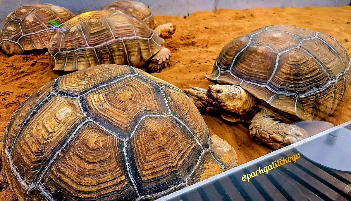 Гигантские черепахи находятся на зимовке в «Зеркальном лабиринте» парка