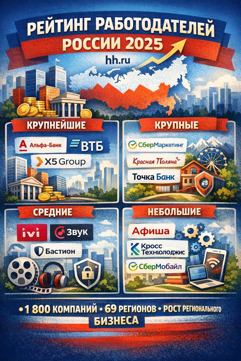 Стали известны итоги Рейтинга работодателей России за 2025 год от hh.ru — и это один из самых показательных срезов рынка труда за год