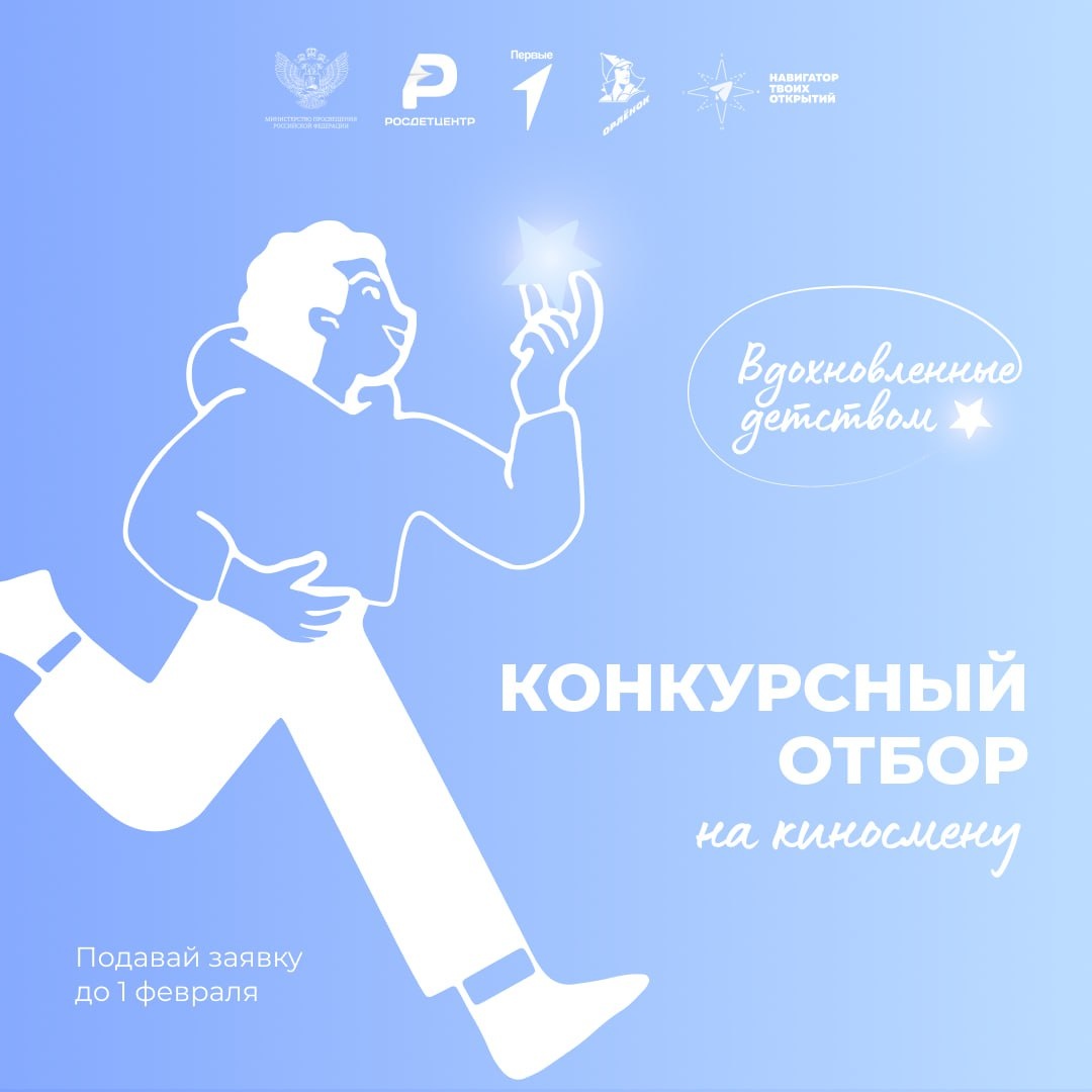 Приглашаем всех Первых от 11 до 16 лет на киносмену «Вдохновлённые детством» в ВДЦ «Орлёнок