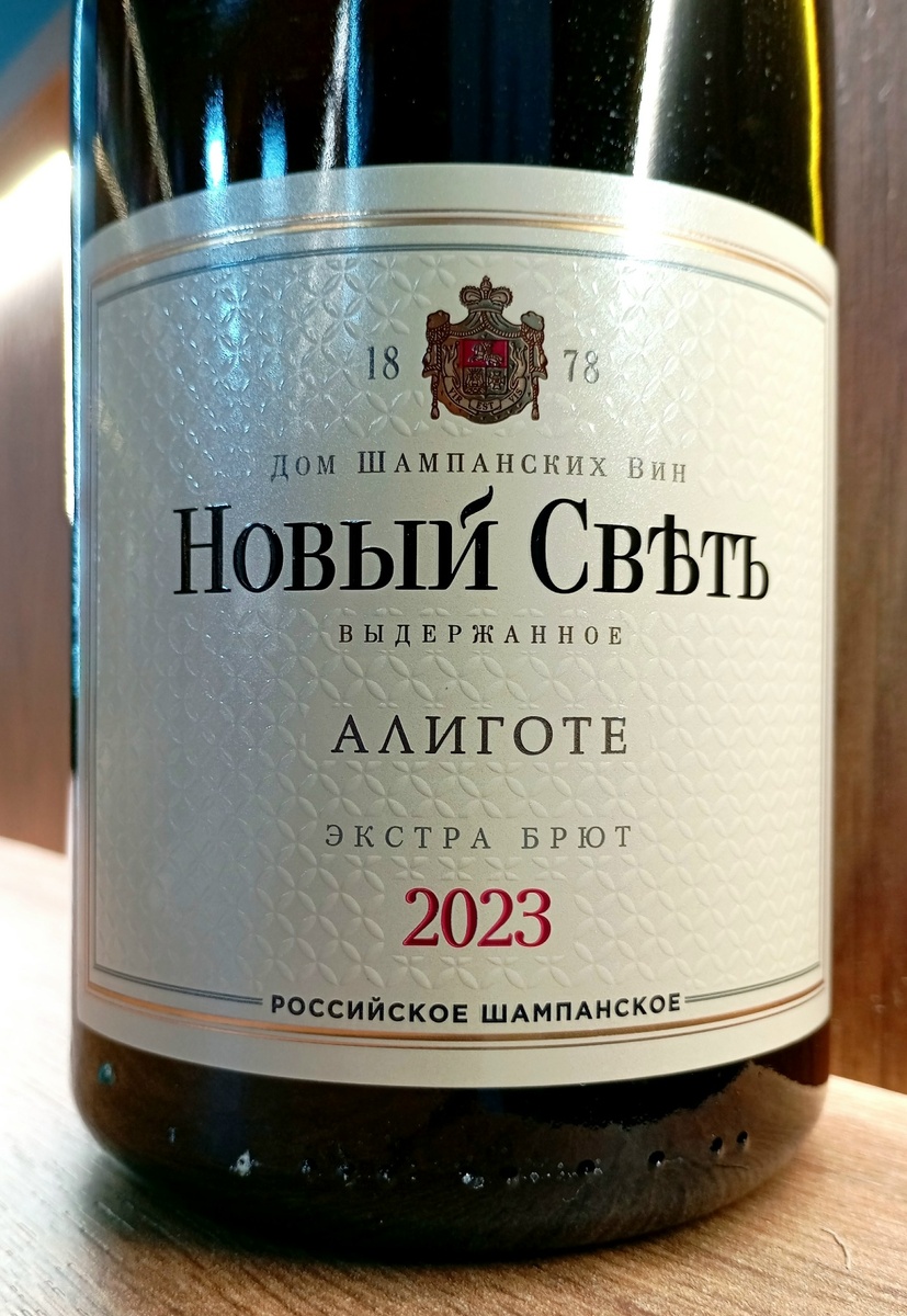 Виноделы Крымского полуострова сорт Алиготе, который на своей французской родине сейчас впал в немилость (всего-то около 2000 га), очень уважают и с удовольствием делают из него моносортовое вино. Гораздо чаще, чем их материковые коллеги. Статистически доказать этого я не могу, но мне так кажется. А если мне так кажется, то так оно и есть. Вот! Навскидку, из того, что вспомнил. Алиготе в чистом виде есть у Олега Репина, Сергея Бескоровайного (винодельня "Бельбек"), у Валерия Захарьина. Не остаются в стороне "Массандра", "Инкерман", "Вайнкрафт", "Усадьба Перовских". "Новый Свет" пошёл ещё дальше и сделал первое российское шампанское по классической технологии в Крыму из сорта Алиготе в стилистике брют натюр урожая 2021 года. А сегодня мы разбираем "Новый Свет. Алиготе" Российское шампанское выдержанное экстра брют белое. Год урожая: 2023.