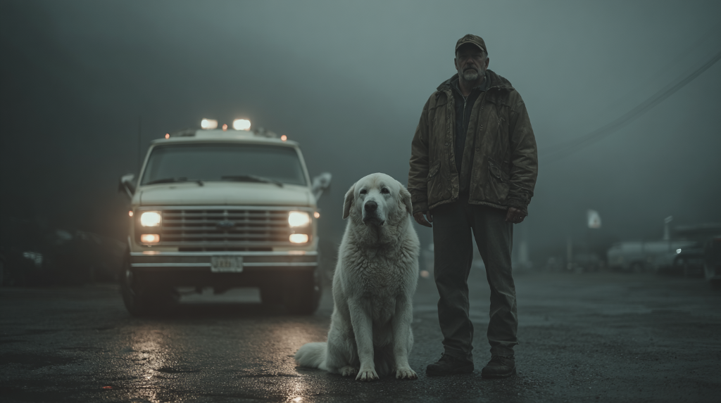 В углу фургона, вжавшись в кучу старых тряпок, сидел пес. Это был алабай, огромный, белый, с купированными ушами. Но он не выглядел убийцей. Он дрожал. На боку, на белоснежной шерсти, расплывалось красное пятно — пес ударился о прутья или его зацепило рикошетом?