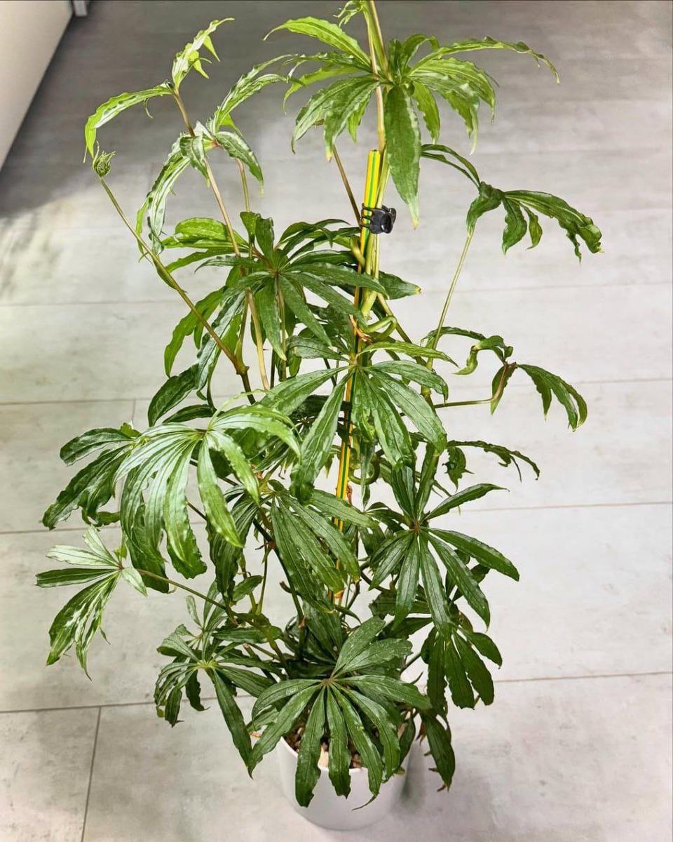 Его главная магия — в листьях. Они не цельные, как у классических антуриумов, а сильнорассеченные, напоминают изящную звезду или раскрытую ладонь с длинными тонкими «пальцами». Каждый лист может иметь от 7 до 13 сегментов! Любит рассеянное освещение, тепло и регулярные поливы. Для посадки используйте хорошо дренированные субстраты.