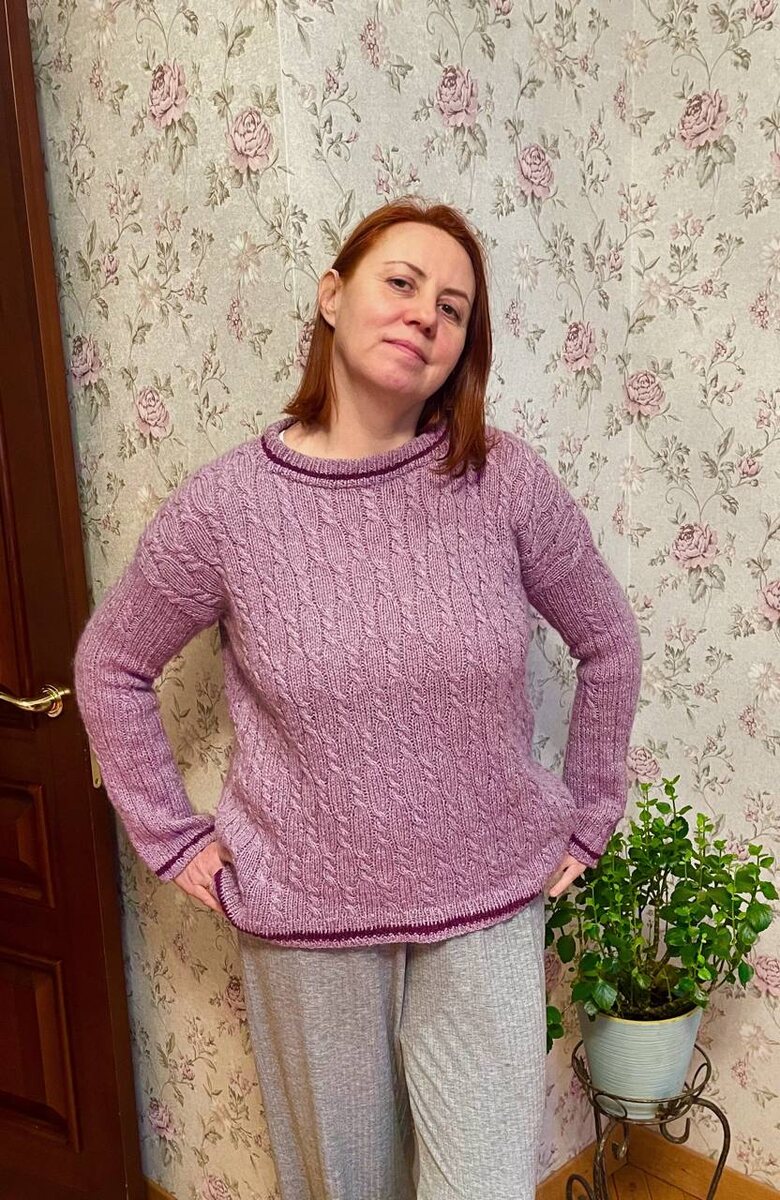 » Дачный проект , название пришло от картины , которая висит в комнате . Состав : 30% кашемир 70% мериноса в 2 нити 1 нить кидмохера . Цвет необычный до меня . После ВТО вытянулись рукава , так что пришлось перевязывать , распустила 10 см . Не думала , что такой состав так растягивается. В ширину тоже вытянулся , но такой оверсайз мне нравится.