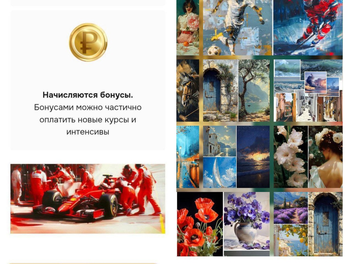 💰✨ Бонусы начисляются за покупку игр и только во время их проведения. Начисление бонусов происходит автоматически на этапе оформления заказа, в размере потраченной суммы. Вам придёт письмо с уведомлением о начислении. Общую сумму действующих бонусов вы можете увидеть нажав на свою иконку рядом с колокольчиком в правом верхнем углу в личном кабинете https://course.art-class.online/ Начисленные за игру бонусы несгораемые, их можно копить. БОНУСАМИ можно частично ОПЛАТИТЬ любые наши интенсивы и курсы (не марафоны) в размере до 30% от общей стоимости заказа. Списание бонусов в счёт оплаты курса (интенсива) происходит автоматически на этапе оформления покупки. Если у вас возникли какие-либо вопросы или сложности в проведении платежа, напишите, пожалуйста, нашему менеджеру @Artclassmanager или в комментариях к этому посту ✍ Успешного творчества, друзья! Мы за то, чтобы обучение было комфортным 👩🎨🎨 Купить игру и выбрать подходящий курс на нашем сайте 👉 https://paint.art-class.onli