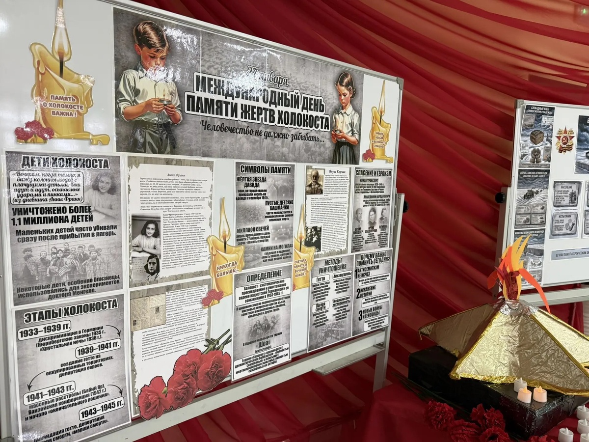 Н. Раевского была организована выставка-инсталляция «Стена памяти», приуроченная к Международному дню памяти жертв Холокоста и Дню полного снятия Блокады Ленинграда. Это значимое мероприятие стало результатом творческой работы учащихся 6 "В" класса, которые в рамках уроков технологии создали уникальную инсталляцию. «Стена памяти» включает в себя фотографии, документы, цитаты и личные истории, связанные с этими памятными датами. Каждый элемент выставки призван напомнить о трагических событиях прошлого и важности сохранения исторической памяти. Учащиеся не только изучили значимость этих дат, но и отразили свои чувства и размышления в творческих работах. Выставка стала важным шагом к формированию уважения к истории и культуре, а также содействию осмыслению уроков прошлого. #СОШ24_Новороссийск #НавигаторыДетства #Росдетцентр #времяпомнитьНД93