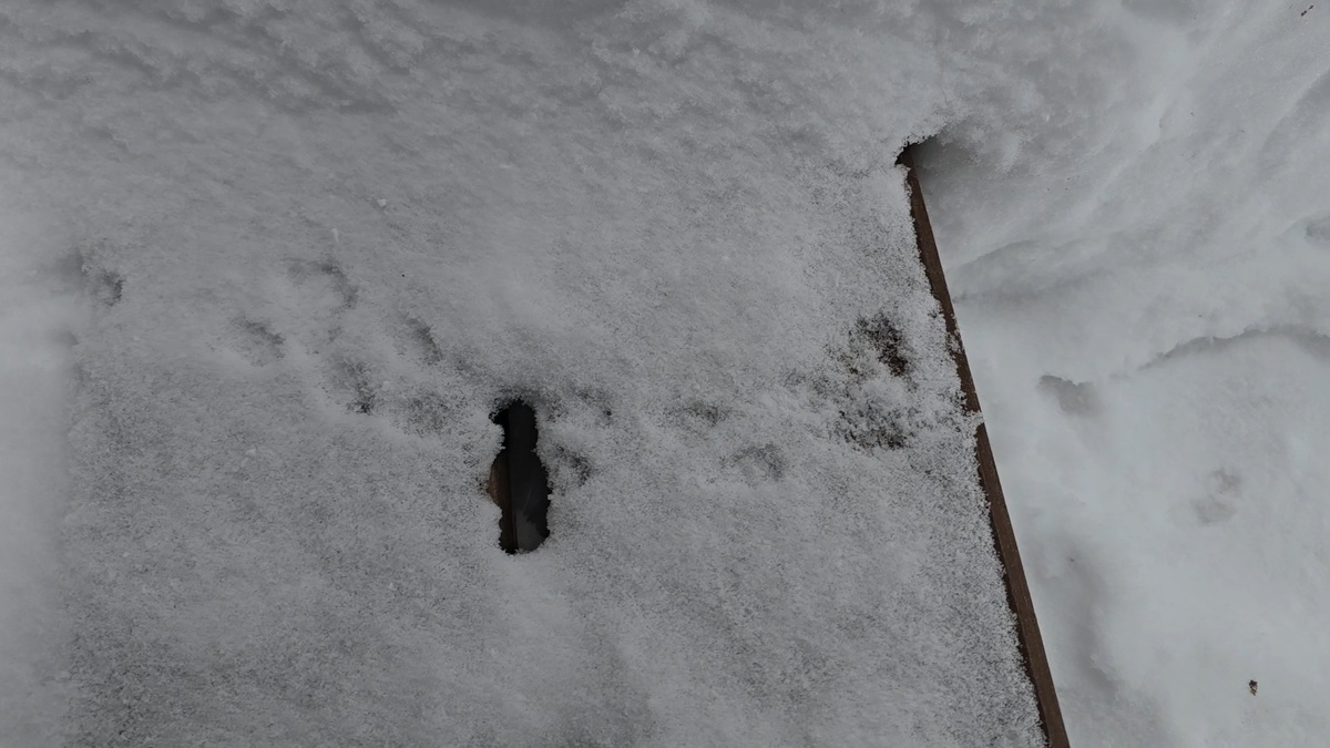 А лось ходил по склону ручья. Судя по следам, долго и вдумчиво. К сожалению, на камеру он не попал, она не работала, когда был заглушен интернет.