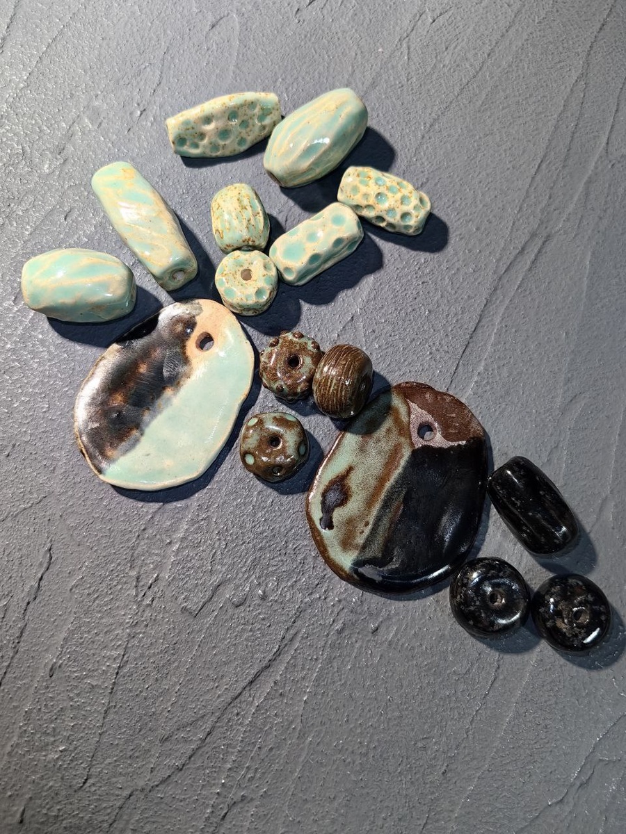 Абсент совсем свежий и остатки в банке выдали разную крапчатость. Серебристые потеки на темном пробнике - ""Золото Рустика". Синего цвета от Тишины не случилось. Это самое забавное.. #проМашиныбусины #керамика #шпаргалкикерамика #gavrilin_glazes