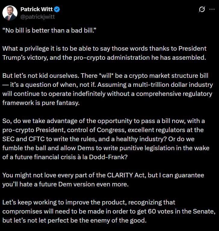 Советник Белого дома по криптовалютам критикует Coinbase за выход из законопроекта о структуре рынка, предупреждает, что задержка может привести к гораздо более жесткому регулированию.