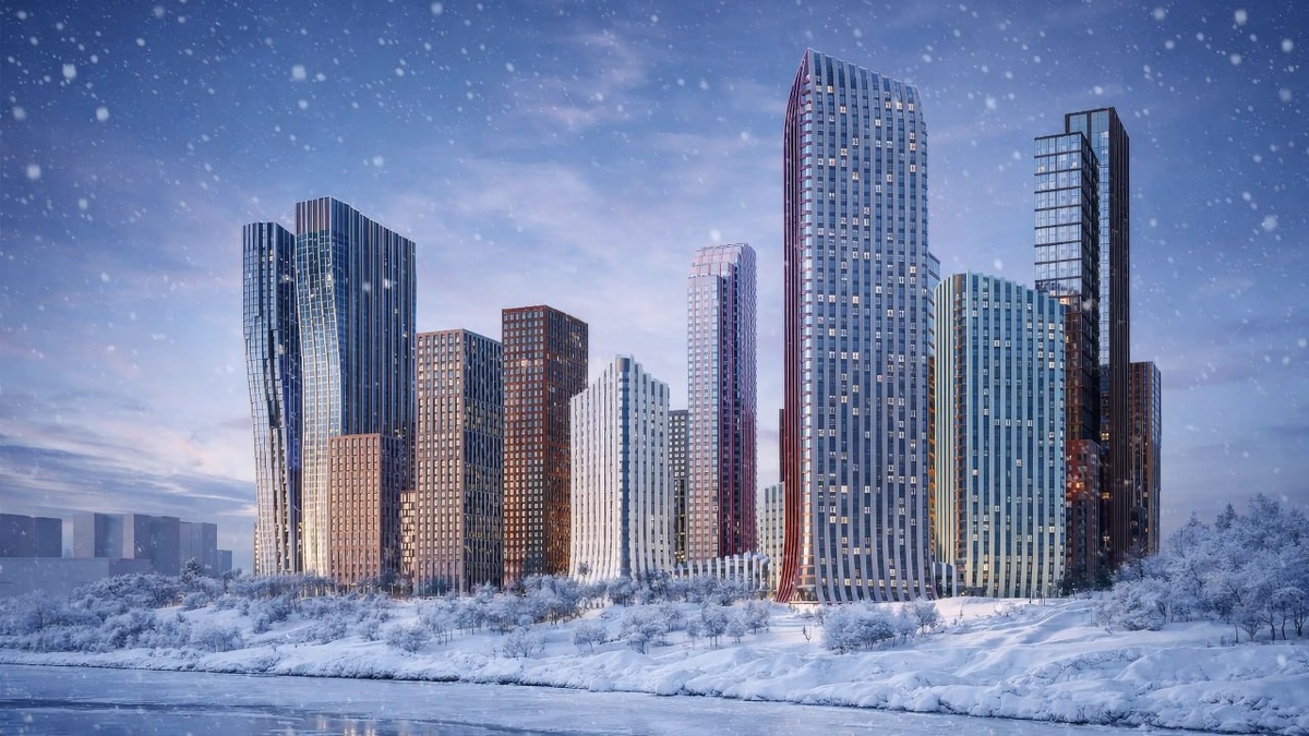 Для жилого комплекса «Wave» появилась парочка новых рендеров, на которых архитектура проекта показана в зимнее время года.