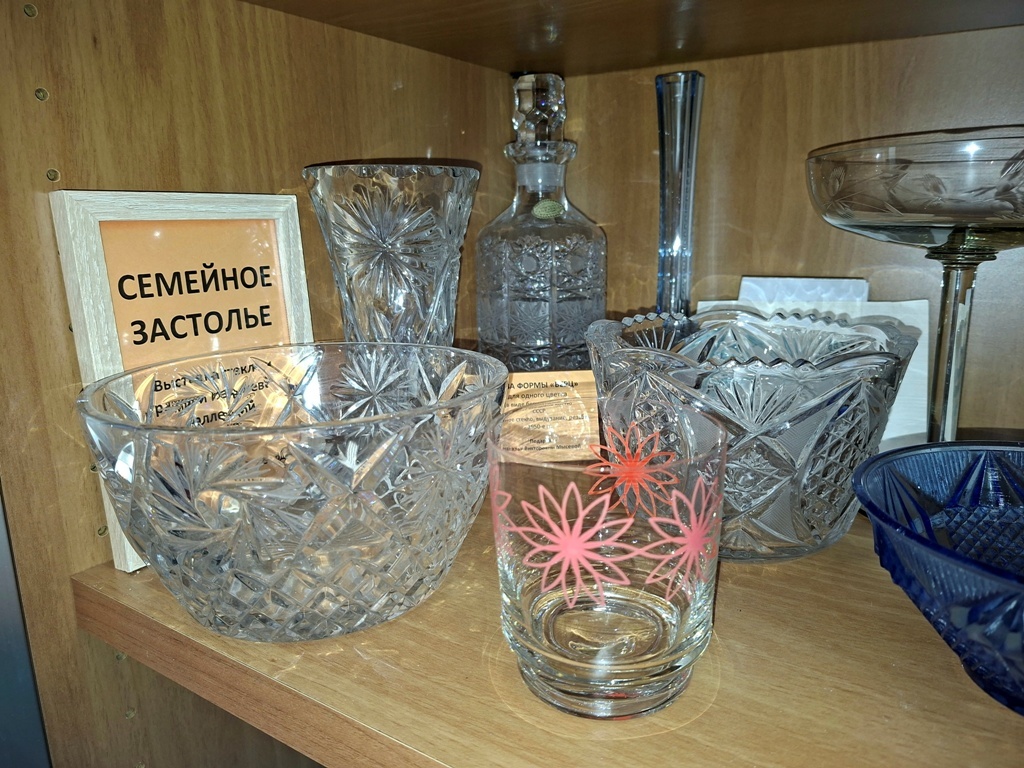 В выставочном зале туристско-информационного центра открылась выставка «Семейное застолье», посвященная посуде, столовым приборам и предметам сервировки. Настоящий праздник во все времена невозможно представить без застолья и красиво оформленного стола. На нашей выставке представлена посуда, изготовленная на фарфоровых и фаянсовых фабриках Кузнецовых, столовые приборы известных европейских заводов второй половины XIX – начала XX века. Центральное место экспозиции занимает конечно же посуда Советского периода. Прекрасные вазы для цветов и фруктов, салатники, графины, бокалы, стаканы, фужеры и т.д. Предметы из хрусталя представлены работами мастеров Гусевского хрустального завода имени Мальцова. Есть на выставке винтажная авторская ваза из серии "Ананас" 60-х годов XX века от известного дизайнера по стеклу, стеклодува, художника - Франтишека Куделка из Чехословакии. Изделия из стекла Уршельского стекольного завода (Владимирская область) были в каждой советской семье. Выставка «Семейное з
