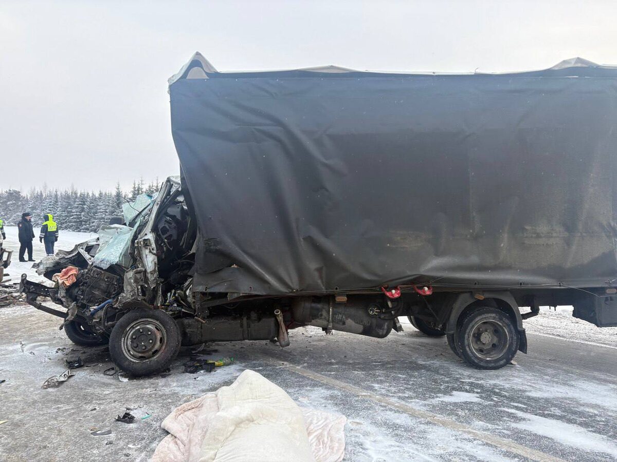 Авария произошла 21 января около 14:00 на 372-м километре федеральной автодороги в Алнашском районе, сообщает пресс-служба Госавтоинспекции Удмуртии. 66-летний водитель автомобиля «Даф» с полуприцепом во время движения не справился с управлением и выехал на встречную полосу дороги, где столкнулся с автомобилем «Газель», под управлением 29-летнего мужчины. После этого «Газель» въехала в грузовики «Ман» и «Вольво» В результате столкновения водитель «Газели» получил смертельную травму. Водители других авто не пострадали. Фото: Госавтоинспекция Удмуртии Подписывайся на Ижевский бизON #Удмуртия