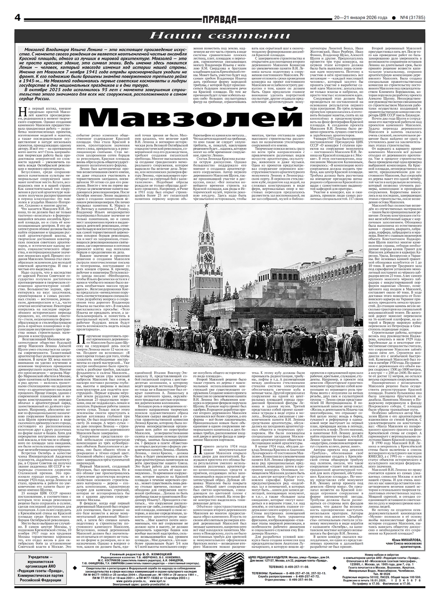 Сегодня, 21 января, в день памяти Владимира Ильича Ленина, «Правда» публикует материал о Мавзолее - одном из главных символов Красной площади и советской эпохи. Это не просто мемориальное сооружение, а композиционный центр площади, место, где история страны обрела каменную форму. Член Союза московских архитекторов Юлия Михайлова рассказывает, как рождался образ Мавзолея: от первых деревянных проектов до строгого решения Алексея Щусева, воплощённого в граните. Почему именно этот вариант оказался верным среди десятков предложений, включая откровенно фантастические. И как молодая советская архитектура смогла тактично вписать Мавзолей в ансамбль Красной площади, сделав его смысловым центром. Это реальная история, опирающаяся на документы, факты и профессиональное знание, а не “сказки” и псевдосенсации, которыми сегодня пытаются подменять разговор о памяти и символах. 📰 Читайте полностью на сайте газеты: 👉 https://gazeta-pravda.ru/issue/4-31785-2021-yanvarya-2026-goda/mavzoley/