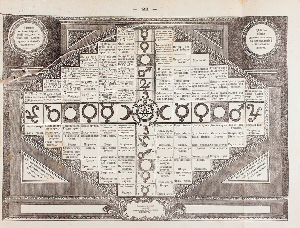 На заре XVIII столетия в России появился уникальный «мистический» календарь Якова Брюса. Это был не просто календарь, а целый альманах с астрологическими прогнозами, предсказаниями и указаниями планеты-покровительницы года. В народе его считали чуть ли не пособием для чернокнижников, что неслучайно, ведь у Брюса в народе была отнюдь неоднозначная слава.