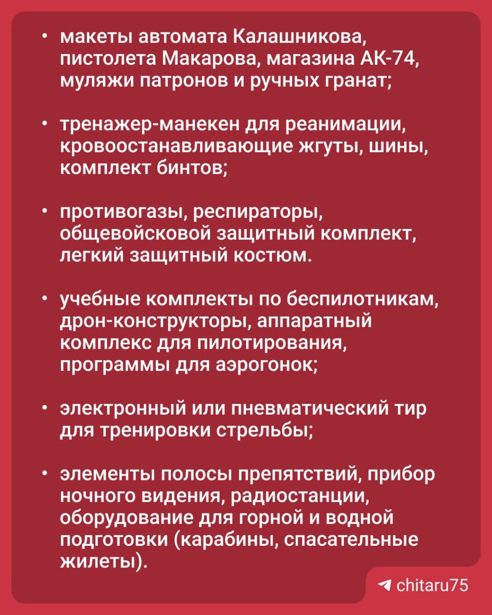По данным коллег из @MSK1 Новости Москвы, на уроках по основам безопасности и защиты Родины (ОБЗР) российских школьников планируют учить сборке и управлению БПЛА. Список необходимого для кабинетов оборудования в почти 90 пунктов утвердило правительство РФ. В базовое оснащение входят разные предметы, в том числе и те, которые помогут ознакомиться с армейским бытом и спасательным делом.⬆️ Как считаете, нужно ли это все в школьной программе? 👍🏻 — да, так научат нужным навыкам 🤔 — не думаю, что это уместно именно в школе 👎🏻 — нет, в школе учатся дети, а не солдаты 🟦 «Чита.Ру» в MAX | Предложить новость