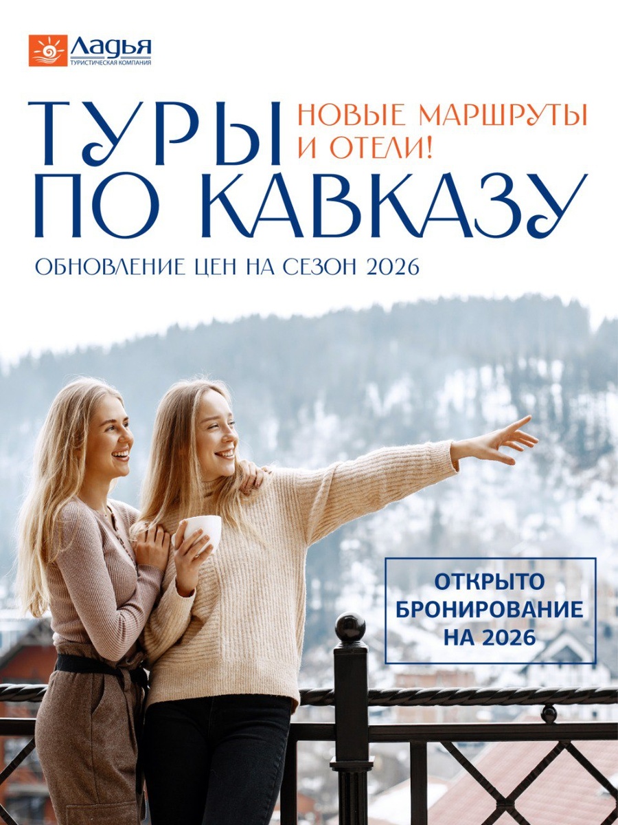 Уважаемые путешественники! 🎉Рады сообщить, наши туры по Кавказу на 2026 год уже доступны для бронирования по новым ценам. В новом году мы улучшили логистику, подобрали новые отели и обновили экскурсионную программу. И по прежнему наши путешествия будут яркими, комфортными и запоминающимися! Все новинки и изменения уже опубликованы на 👉нашем сайте в разделе «Туры по Кавказу» Ваша команда «Ладья»❤️
