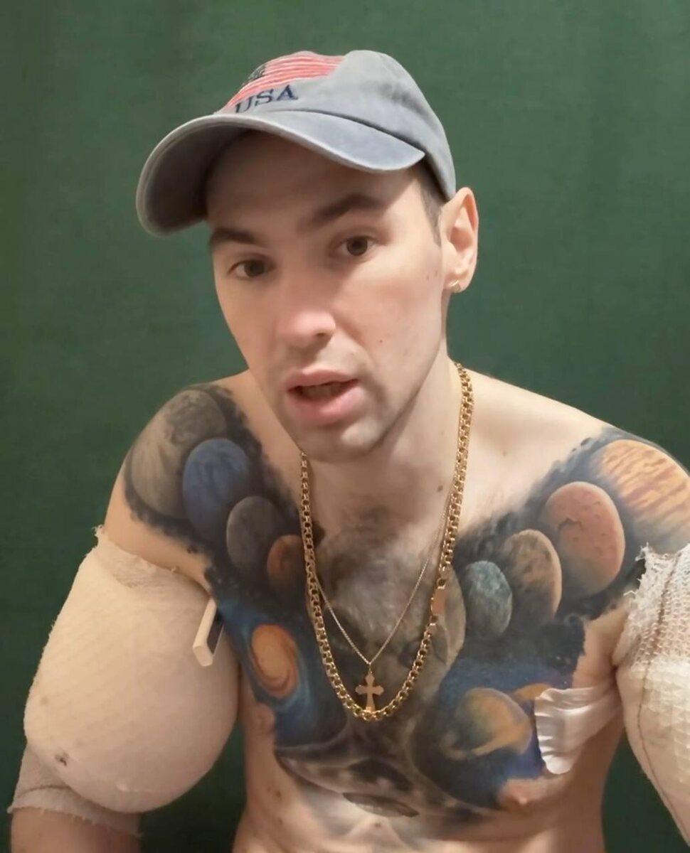 Пятигорский фрик Кирилл Терешин (более известный как «Руки-Базуки») решил примерить на себя роль учителя и показать, как действительно надо жить. Возомнив себя «идеальнейшим примером», блогер принялся поучать тех, кому до него есть дело: «Я думаю, я хороший, идеальнейший пример даю молодежи, как не надо делать. И говорю прямо, что безбедную жизнь легко сделать в 30 лет, даже не накачивая в себя инородные субстанции», – заявляет фрик. К слову, с этими самыми «субстанциями» Кирилл начал бороться еще в прошлом году. После нескольких отказов нашел врачей, которые осмелились взяться за «руки-базуки». Блогер то и дело ложится под нож, постепенно удаляя вазелин из конечностей. Не обошлось в этом процессе и без проблем. Оказалось, что резать «базуки» смысла нет. Проблема в том, что накаченный вазелин пережал вены, из-за чего кровь не может пройти дальше. Отсюда и объем – это воспаление. Да и если бы вазелин сам по себе имел такой объем, хирурги в унисон говорят – удалять только вместе с рука