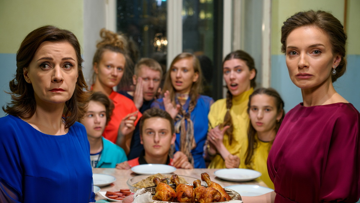 Гости рассаживались. Пришли племянники — Максим с девушкой, голодные студенты, у которых глаза сразу загорелись при виде еды. Приехала дочь Маша с мужем. Последним ввалился брат Витька с женой Тамарой. Витька — вечная «паршивая овца» в семье: шумный, наглый, любитель выпить за чужой счёт.
