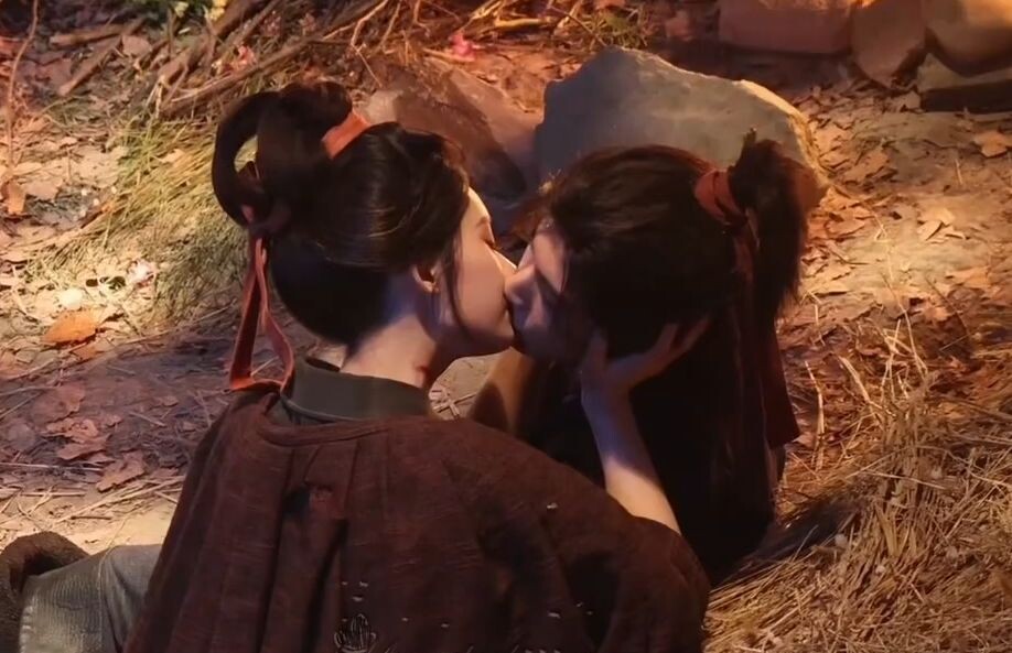 Чжан Лин Хэ и Линь Юнь на съёмках исцеляющего поцелуя в дораме «Путь к славе»