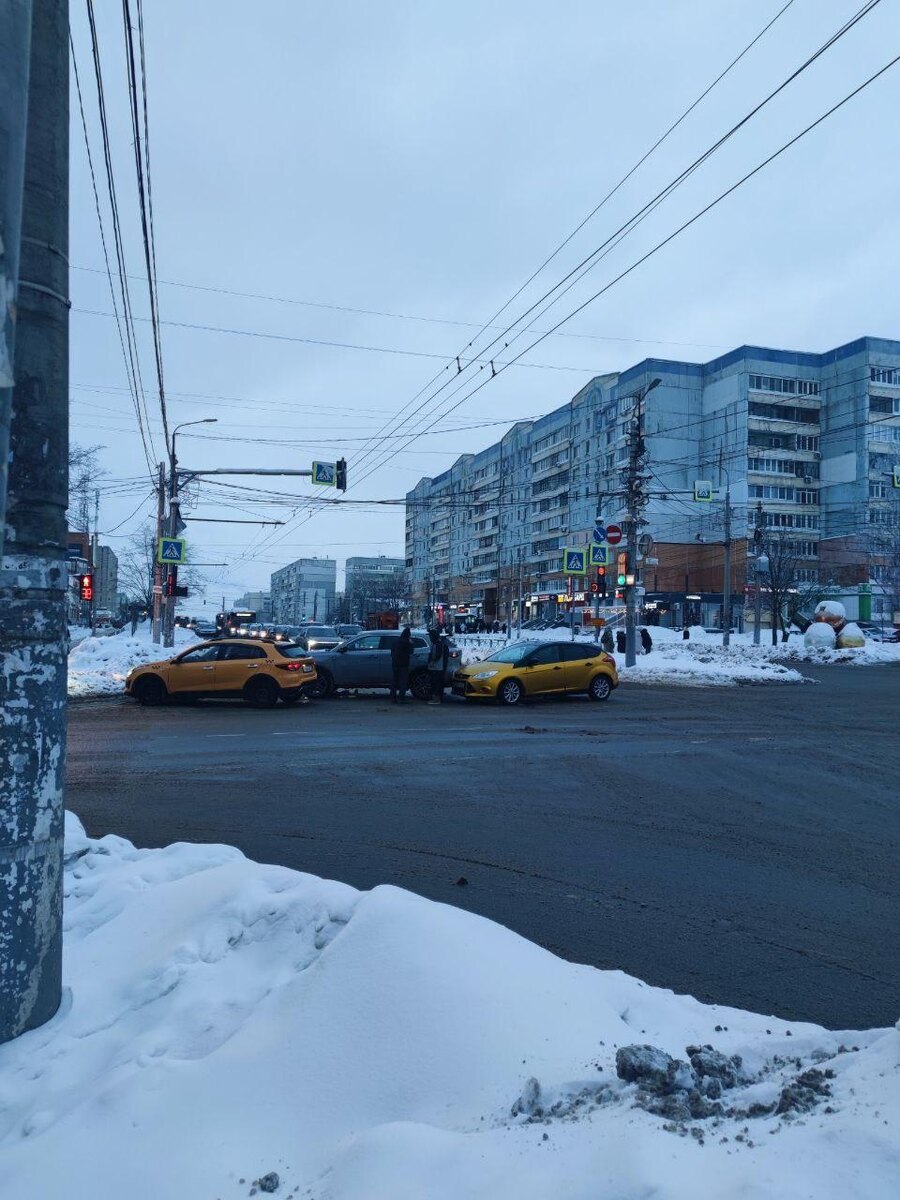 На улице Ложевой произошло дорожно-транспортное происшествие с участием трёх автомобилей. Движение затруднено.