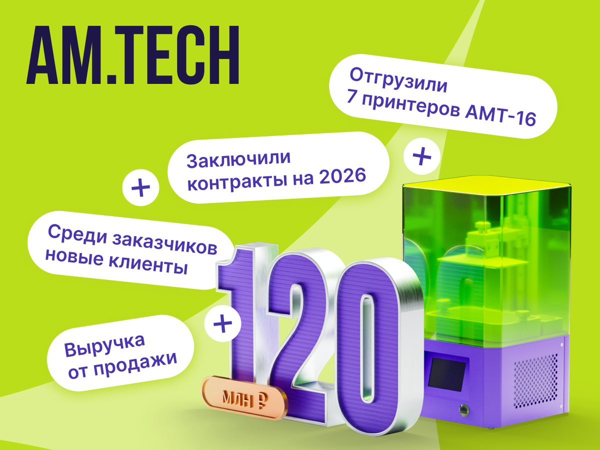 Команда подводит предварительные итоги прошедшего года (финальные будут к концу января). Так, в 2025-м AM․TECH отгрузил семь промышленных принтеров AMT-16. Выручка составила 120 млн ₽. Покупателями стали предприятия машиностроения и авиакосмической отрасли, а также крупнейшие научные и учебные институты России. Шесть принтеров приобрели новые клиенты, один заказ — повторный. Также AM․TECH заключил с клиентами дополнительные контракты на поставку аддитивных систем, работающих по другим технологиям. В планах на 2026 — заключение сервисных контрактов на постгарантийное сопровождение оборудования. Подписывайтесь на телеграм-канал инвестплатформы «Аврора», чтобы узнать про инвестиции в компании на стадии активного роста! Карточка AM.TECH Личный кабинет на «Аврора»