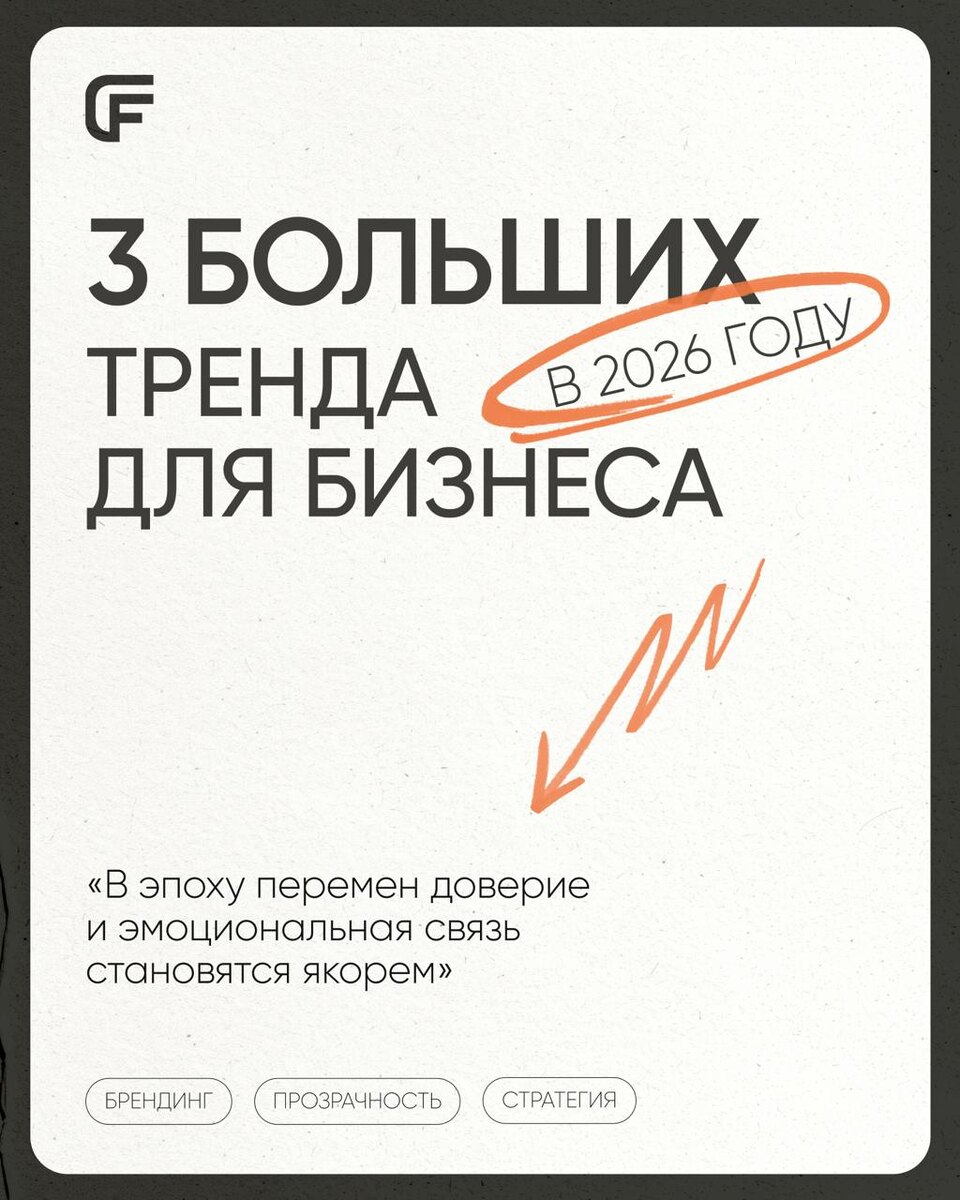 По версии McKinsey, Forbes, IBM и Entrepreneur Ставка – на брендинг. Снова. Брендинг – основа устойчивости и долгосрочного роста бизнеса в 2026 году. Об этом говорят эксперты McKinsey. В рамках исследования State of Marketing Europe 2026 более 500 CMO отметили: в эпоху перемен доверие и эмоциональная связь становятся якорем, который дает вашим клиентам ясность и ощущение безопасности. Развитие бренда компании – ценный актив, который поможет выстроить крепкую эмоциональную связь с клиентом и дифференцироваться от конкурентов. Сила – в стратегии Несколько лет назад мы заговорили о начале эпохи турбулентности, а теперь мы в ней живем. Горизонт планирования снизился с нескольких лет до нескольких месяцев, а порой даже недель. Но эксперты Forbes уверены: сила лидера – в стратегическом мышлении. «Лидерами, которые будут процветать в 2026 году, станут те, кто сможет остановиться, сделать шаг назад и мыслить – и действовать – стратегически», – говорится в статье. Умение увидеть то, что упуск