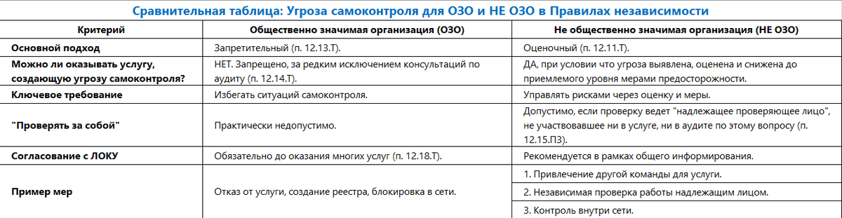 Коллега из реестра ОЗОФР поделился, что от ЦБ пришёл запрос: предоставить информацию об угрозах независимости при аудите за 202Х год. Нужно указать задание, характер угрозы, меры предосторожности или обосновать их отсутствие, приложив документы. Я вам скажу, непростой такой запрос... Суть в том, что регулятор просит показать саму "кухню" работы с независимостью, как того требует статья 8 Федерального закона № 307-ФЗ. Это проверка того, что подход к выявлению угроз у вас — реально работающий механизм, а не красивая отписка. Фактически, по каждому проекту придется продемонстрировать цепочку: Особенно тщательно нужно будет разобрать проекты для ОЗО. Для них, согласно Правил независимости, многие сопутствующие услуги (не обеспечивающие уверенность), такие как бухгалтерские, ИТ-консалтинг или оценка, могут быть прямо запрещены, если они создают угрозу самоконтроля. Нужно быть готовым доказать, что оказанные услуги под запрет не попадали, особенно с учётом пункта о «конфликте интересов» (ч.