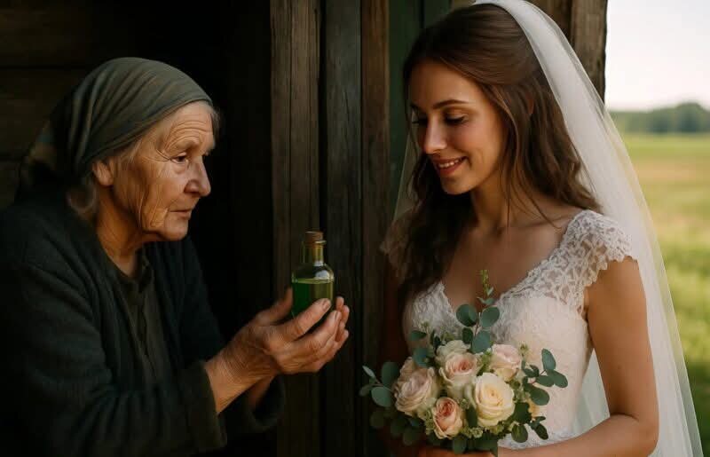 Перед свадьбой бабушка моего будущего мужа вручила мне небольшой стеклянный флакон, наполненный густой зелёной жидкостью. Её взгляд был странно непроницаемым, почти пугающим, а на губах играла едва заметная улыбка, словно она знала что-то, чего не знала я.