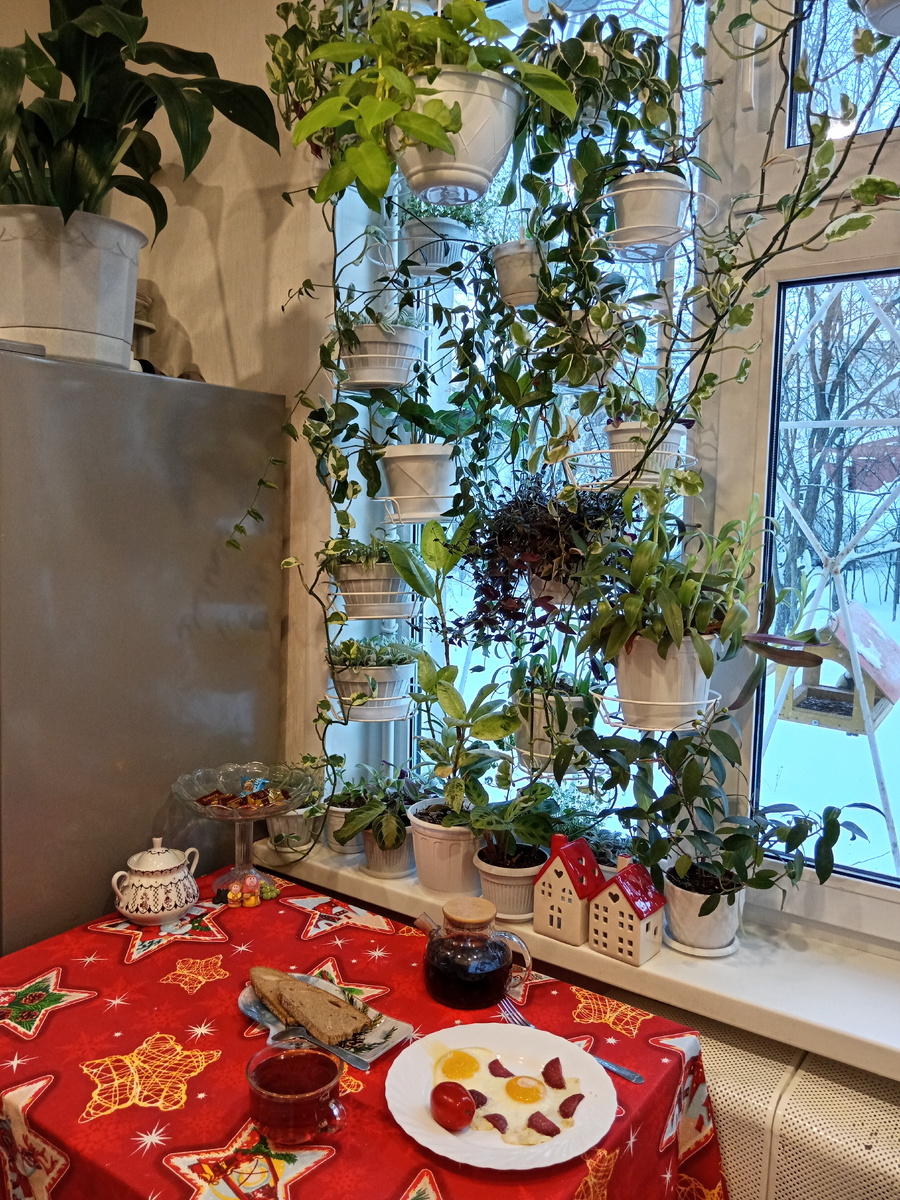 Пока ставила чайник на плиту, обратила внимание, что птиц совсем на кустах нет. Попрятались от холода.