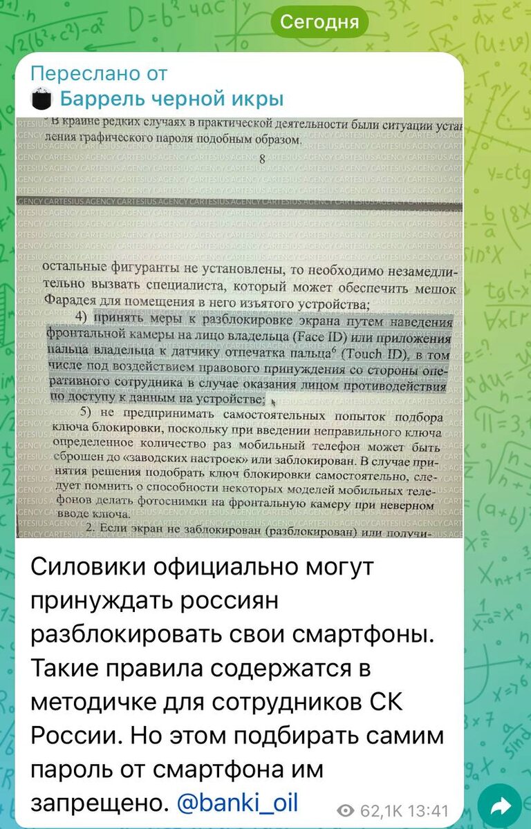 Первый вопрос, который возник - фейк это или нет. Есть ли действительно методичка в СК России для следователей, согласно которой их уча, как принудительно разблокировать телефоны граждан. Такие криминалистические методики и рекомендации разрабатывает управление криминалистики СК РФ. Я связался с парочкой работников отделов криминалистики в разных регионах и оба мне заявили, что они не видели такого. Но это не означает, что ее нет. В тоже время, это вполне может быть фейком. Но лично мое мнение - скорее всего это правда и такое есть. В декабре 2025 г. я здесь 🔗 👈 рассказывал о прошедшей конференции в Москве, на которой сотрудники управления криминалистики СК России говорили ровно то, что написано на этой фотографии. Один в один. В интернете даже можно найти подробное описание этой конференции и там про это будет рассказано. Поэтому, я считаю, что такие рекомендации следователям вполне могли поместить в методичку. Но, есть большое НО! Эти рекомендации НЕ ЗАКОННЫ! Мало того,