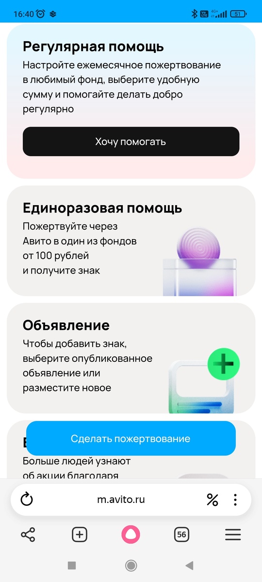 На Авито есть функция «Знак добра». Это специальная метка для объявлений, которая показывает покупателям, что часть средств от продажи (минимум 100 рублей) автоматически перечислится в один из партнерских благотворительных фондов.