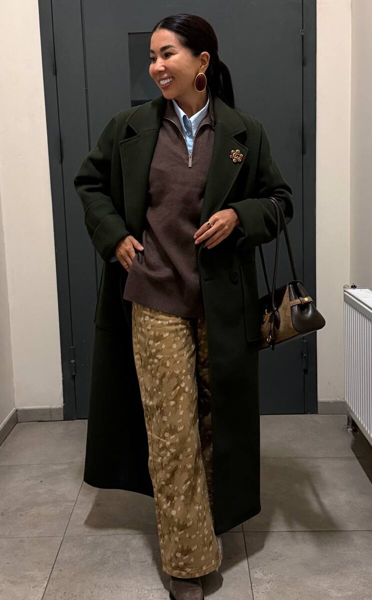 🫶🏾 Делюсь своими покупками - всё как вы любите🥰 В этом сезоне мне особенно полюбились коричневые и зеленые цвета, эти оттенки выглядят благородно и не дают заскучать в черно-белой зиме! Ловите артикулы: Серьги на Lamoda: MP002XW0V78V Джемпер на Lamoda: MP002XW0NKOJ Джинсы на Lamoda: MP002XW0VUT6 Рубашка на Lamoda: RTLAEQ081401 Пальто на WB: 541350914 Ботильоны на Lamoda: RTLADP103001