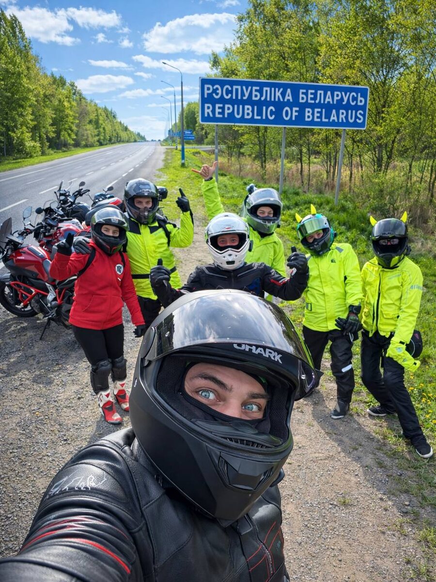 Беларусь, ты нас не заморозишь! 🇧🇾 Как и обещали — рассказываем, как прошла наша поездка в Беларусь. Маршрут: Москва – Минск – Мирский замок – Могилёв – Москва. Выбирали между первыми и вторыми майскими: одни рвались в путь немедленно, другие боялись весеннего холода… Решили большинством голосов — едем на вторые. Спойлер: это нас от заморозков не спасло 😅 А дальше начался квест «Найди ночлег для всех»: нашли на четверых — появился пятый, нашли на пятерых — присоединился шестой, а потом и седьмой внезапно перестал сомневаться… Итог: искали жильё сразу на 7 человек — и нашли! Маршрут готов, домик забронирован — ждём старта. И вот — день Х! Ура! Собираемся на заправке у МКАДа… Проехали всего 2 км от Москвы — и уже дрожим от холода. Начинаем доставать всё из кофров: термобельё, флиски, шарфы… Днём чуть потеплело, пролетели Смоленск, быстро прошли границу — и вот мы в Беларуси! К вечеру снова похолодало. Остановились на заправке, час грелись чаем, надели всё, что